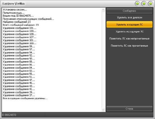 VKExpect v1.0.3 – это новая программа для социальной сети ВКонтакте, которая способна удалять диалоги, входящие и исходящие сообщения, отмечать сообщения как прочитанные или не прочитанные, удалять записи со стены и убирать нажатые лайки со страниц пользователей.