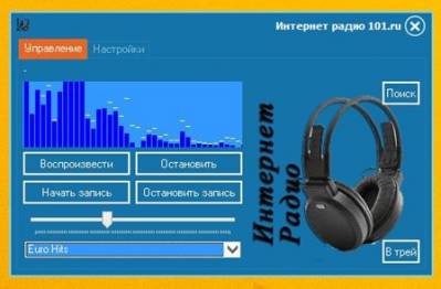 Удобное, очень простое приложение для прослушивания и записи онлайн-радио каналов медиапортала 101.ru . Все пожелания по возможности буду реализовывать.