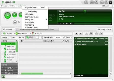 Quintessential Player - аудио/видео плеер. QMP не требователен к системным ресурсам, выдает хороший звук, поддерживает плагины и скины, имеет неплохие визуализаторы. Программа воспроизводит все основные форматы аудио: MP3, CD Audio, Ogg Vorbis, WAV, VQF, MP+, Windows Media.