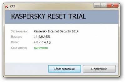 Kaspersky Reset Trial - Программа для сброса триала (для многократного использования триального периода) продуктов ЛК. 2.0 сбрасывает триал мгновенно (ждать несколько часов поиска метки не нужно).