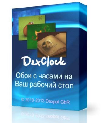 Оригинальные обои с встроенными часами на экран. После инсталляции программы имеется возможность избрать какие угодно из 4-х обоев с идущими на тех часами, отображающими также день недели, месяц и число, или загрузить больше, употребляя меню программы в системном трее.