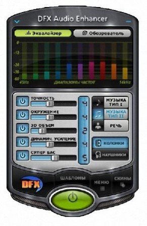 DFX Audio Enhancer — звуковой плагин для улучшения звучания плееров AIMP3, Winamp. Качество звучания значительно улучшается за счет совершенствования частотных характеристик, для чего и предназначен этот плагин.